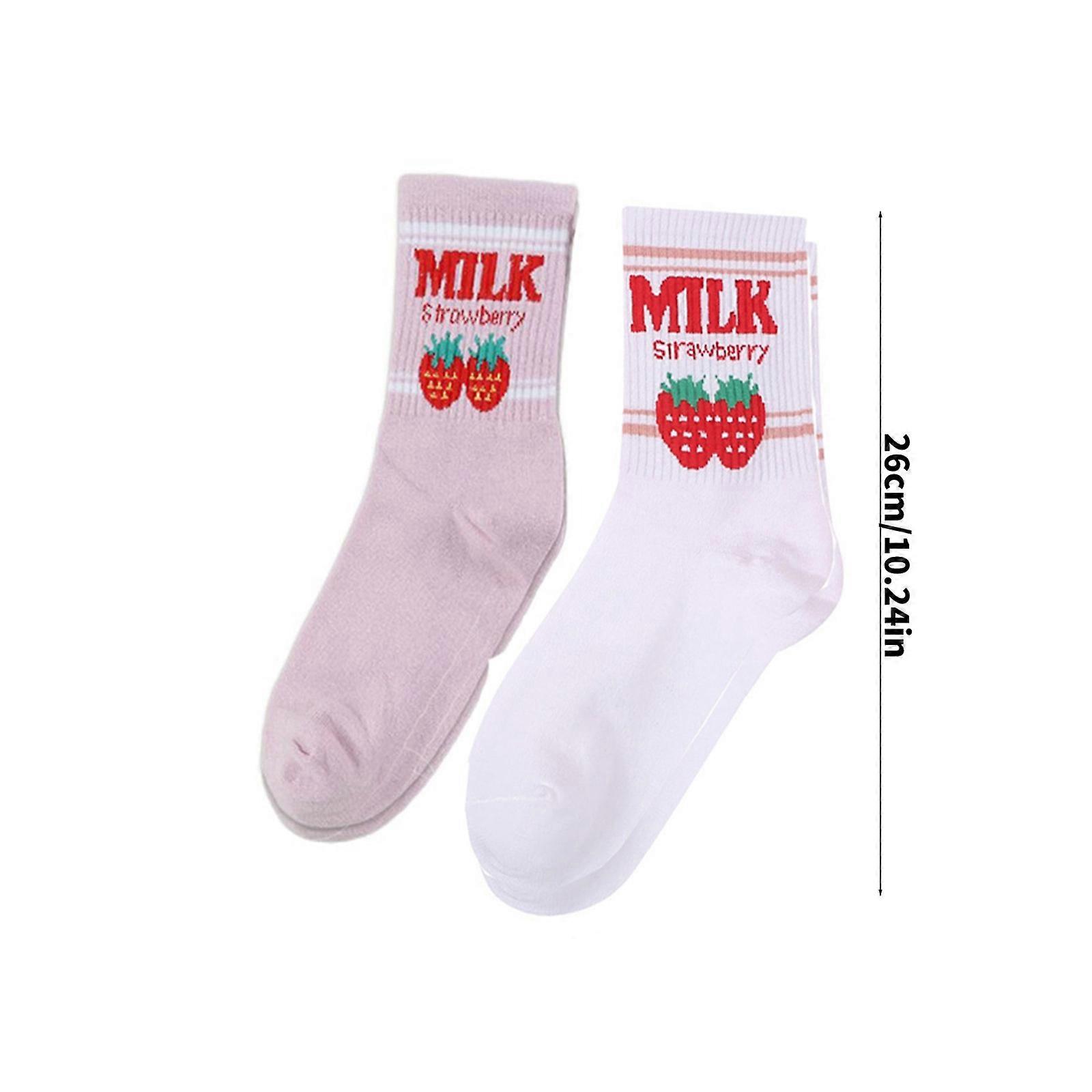 2 Ps Kawaii Sweet Milk Strawberry Women Girls Unisex Socks Harajuku Cartoon Cute Sock Multi One Size