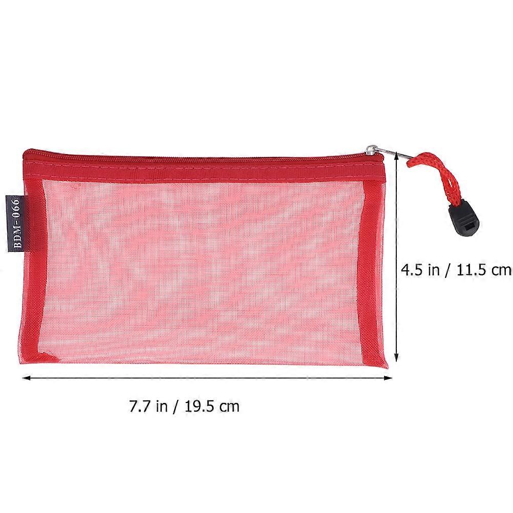 Organizer Pouch Small Mesh Pencil Pen Bag Cosmetic Accessories Travel Use Assorted Color 19.5x11.5x0.2 Cm 6Pcs
