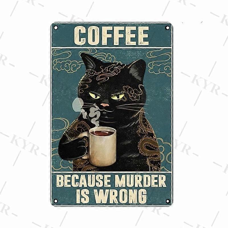 Coffee Tea Easily Distracted By Cats Vintage Metal Tin Sign Black Cat Wall Decor Art Toilet Tissue Tailor Bathe Manicure Plaque