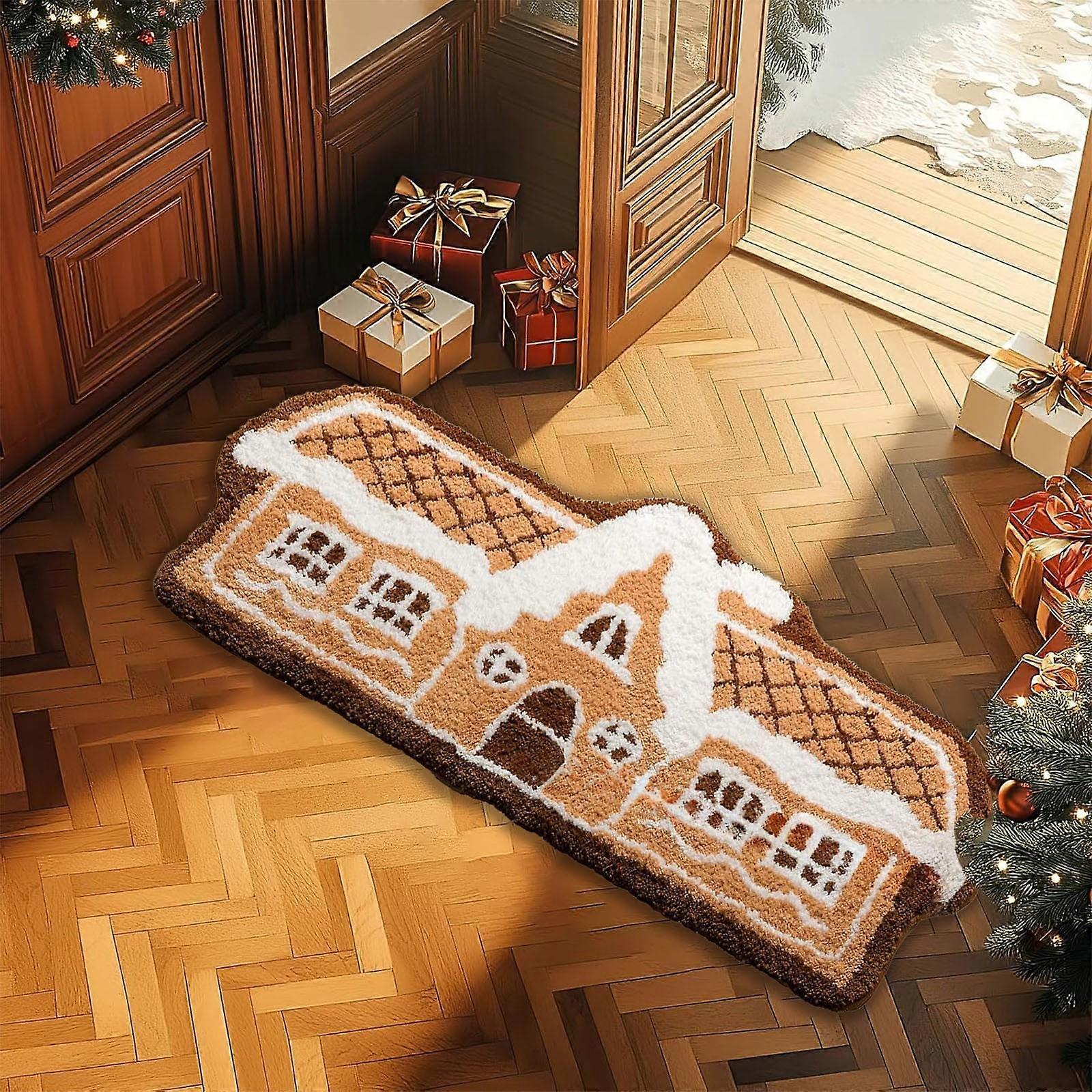 Christmas House Floor Mat Non-Slip, Plush Gingerbread Rug, Ultra Soft Microfiber Door Mat for Living Room Bedroom 19.7x31.5in