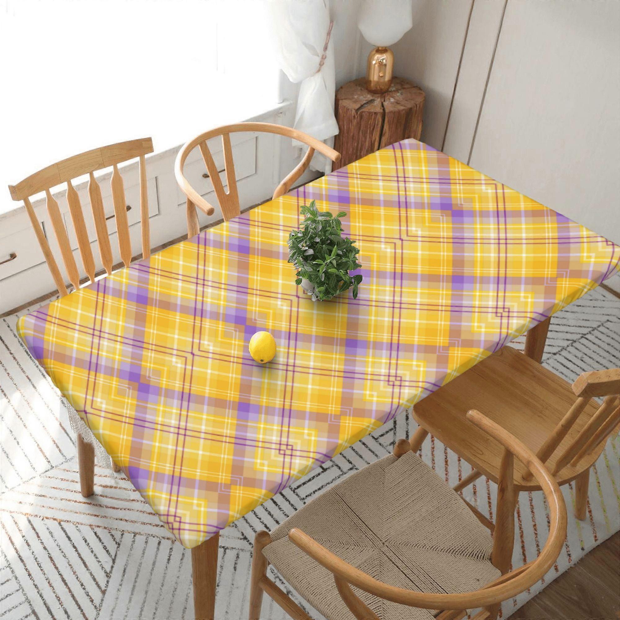 Yellow Lilac And Violet Tartan Tablecloths Polyester Table Cloth For Kitchen Dinning Table Washable Table Cover For Parties Wedding Picnic