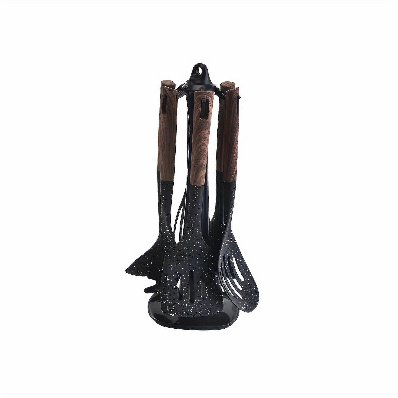 7-Piece Nylon Kitchen Utensil Set with Wooden Handles, Compatible with Non-Stick Cookware - Includes Rotating Stand, Spatula, Ladle, Egg Beater -