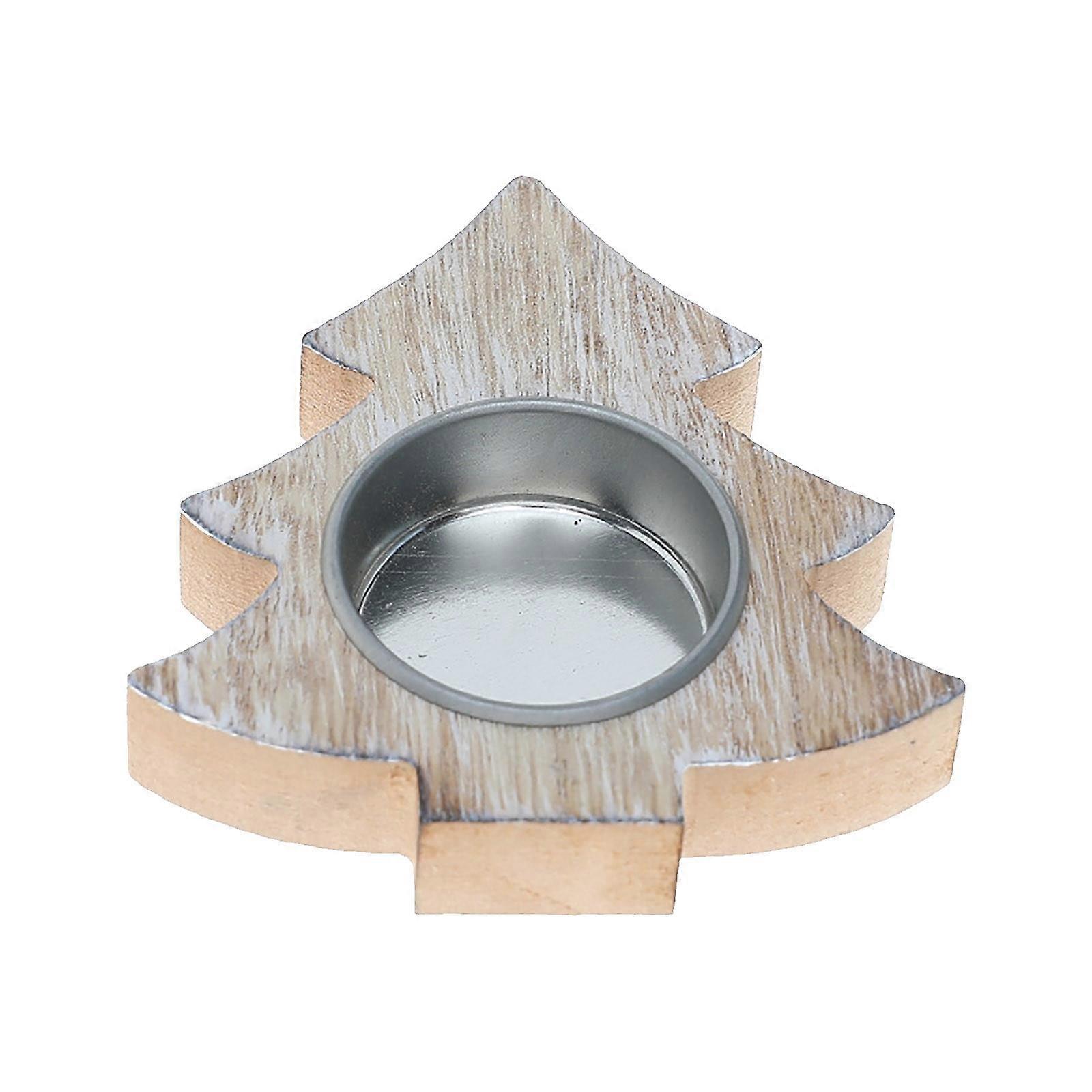 Christmas Wooden Candlestick Holder, Compatible with Tealight Candles, Durable Rust-Proof Holiday Desktop Ornament for Tabletop Display