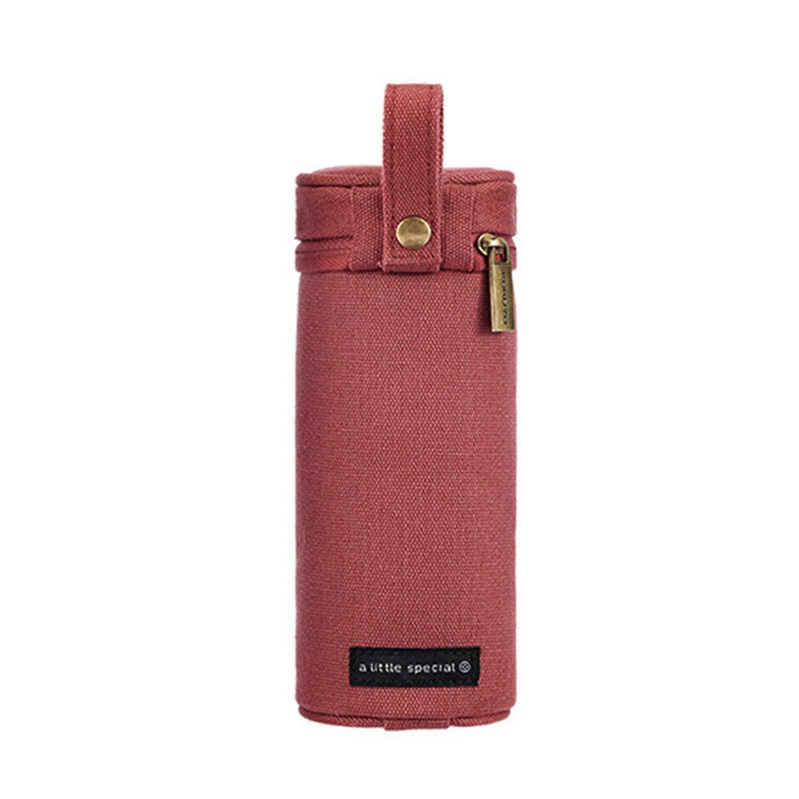 High Capacity Pencil Case Cylindrical Pencil Case Big Capacity Pen Pouches Travel Pen Storage Bag for Office School Red