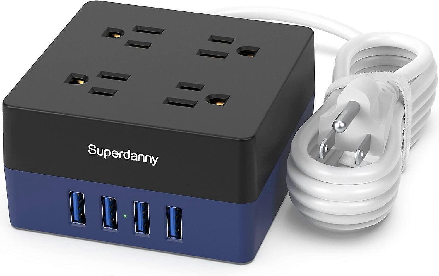 USB Power Strip Surge Protector - Mountable Charging Station with 4 Widely Spaced AC Outlets & 4 Smart USB