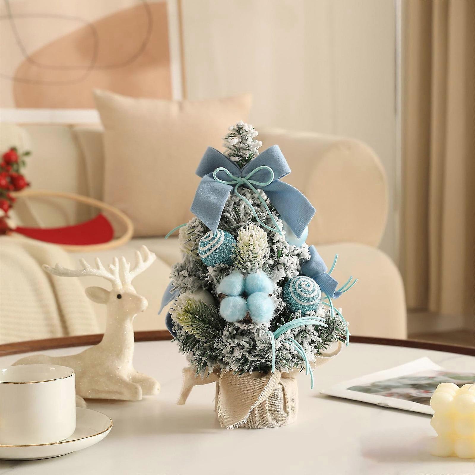 Mini Christmas Tree with Bow & Ornaments, Small Tabletop Xmas Decor for Home Indoor Fireplace