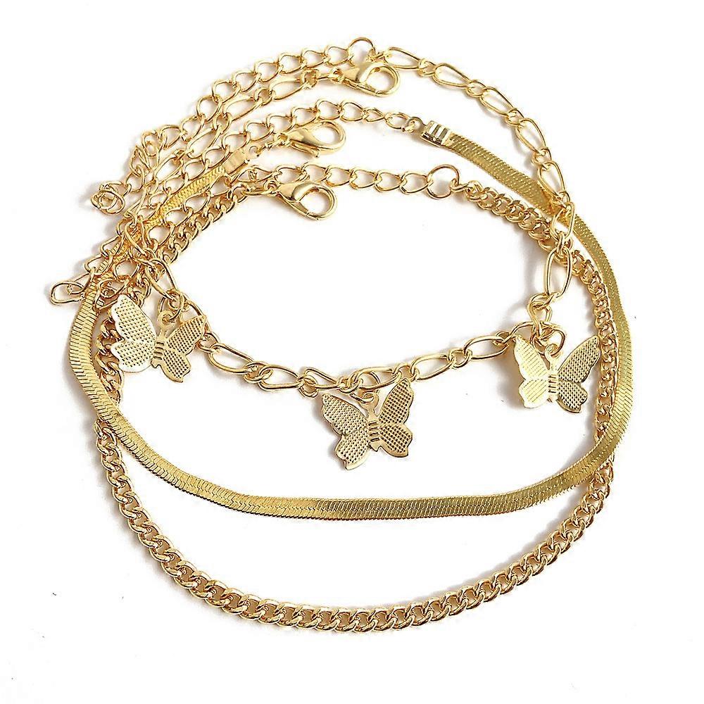 Multi-layer chain butterfly anklet set niche metal anklet three-piece jewelry