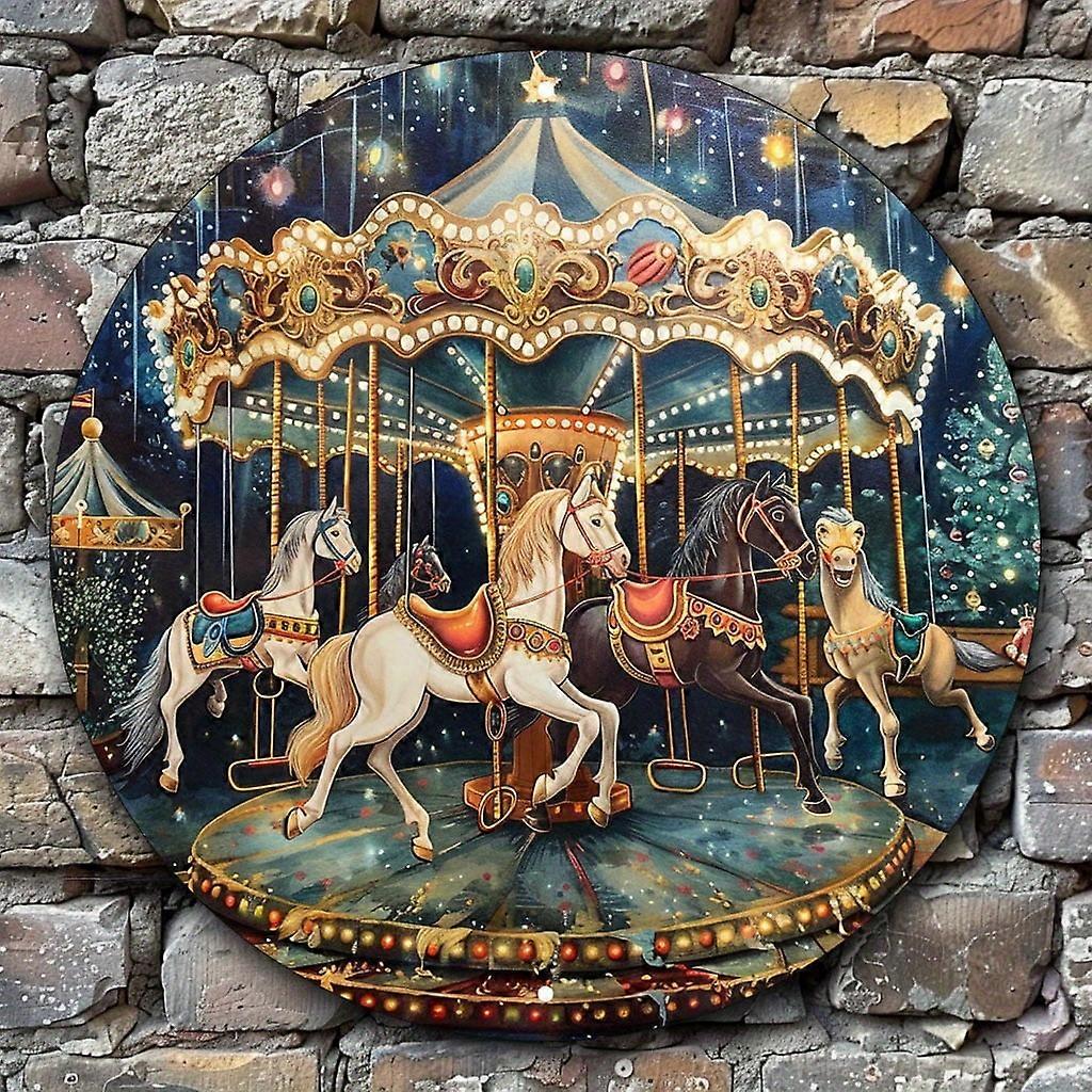 1pc, Enchanted Carousel Round Metal Wall Art - Aluminum Sign for Elegant Home, Office, Wedding, Birthday, Anniversary Decorations