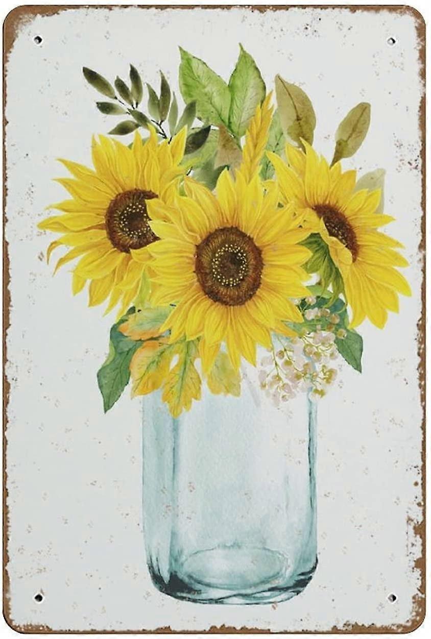 Sunflower Wall Decor Sunflower Bouquet Print Mason Jar Wall Art Farmhouse Wall Decor Country Home Decor Printable Wall Art Novelty Metal Tin Signs Retro Plate Desserts Shop Cafe Decor Sign 8"x12"