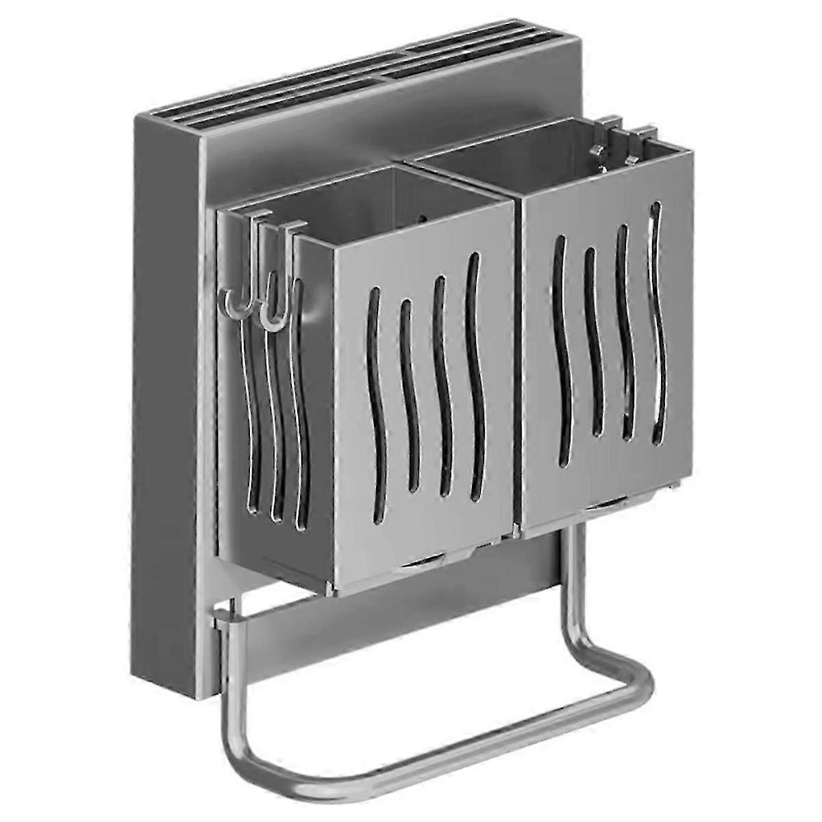 Kitchen Utensil Rack Wall-Mounted Freestanding Cutlery Storage Box Punch Free Draining Chopstick Holder B hwy