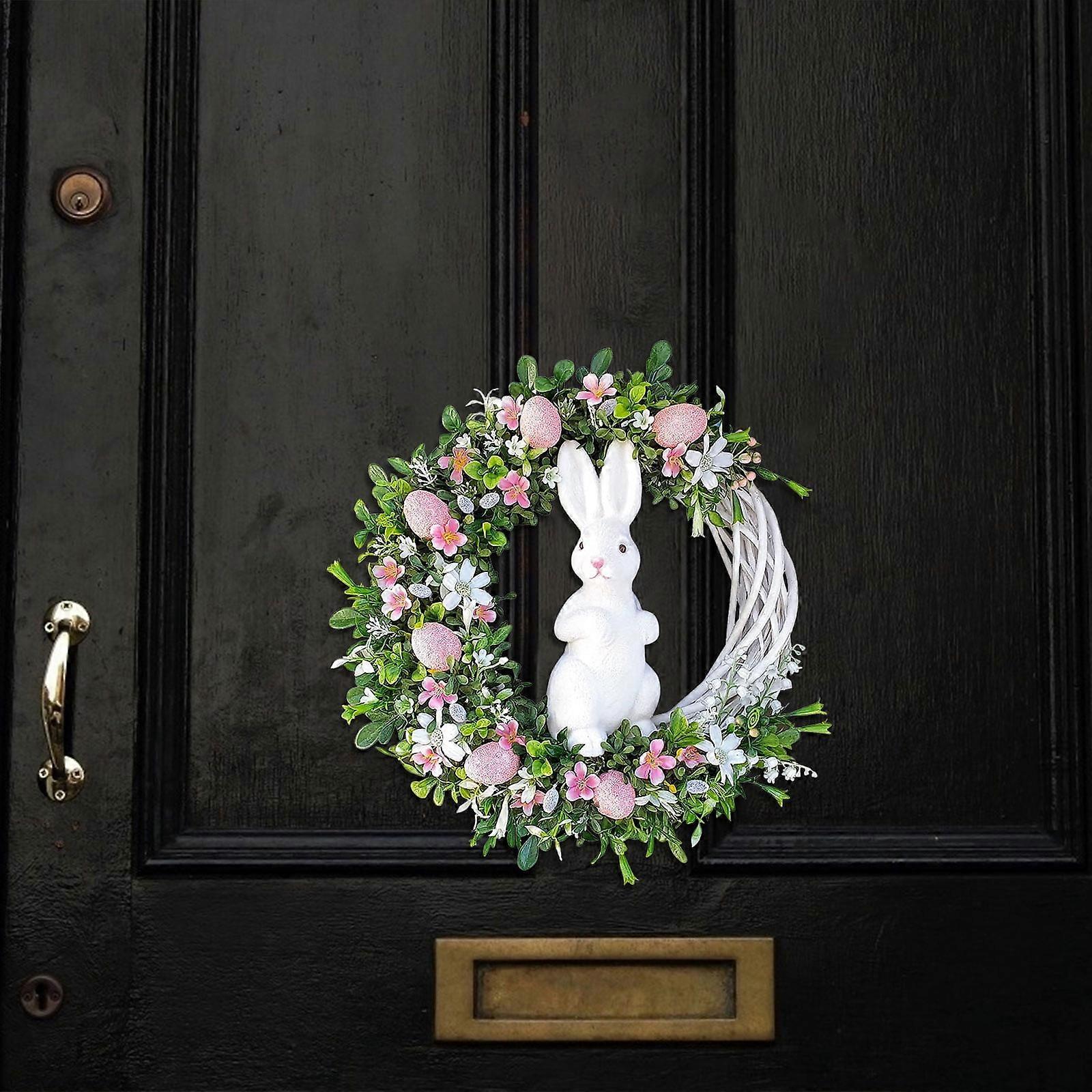 Quinlirra 25cm Easter Hanging Ornaments - Bunny Wreath Acrylic Rabbit Wreath Indoor Outdoor Home Front Door Party Decor, compatible with Easter decor