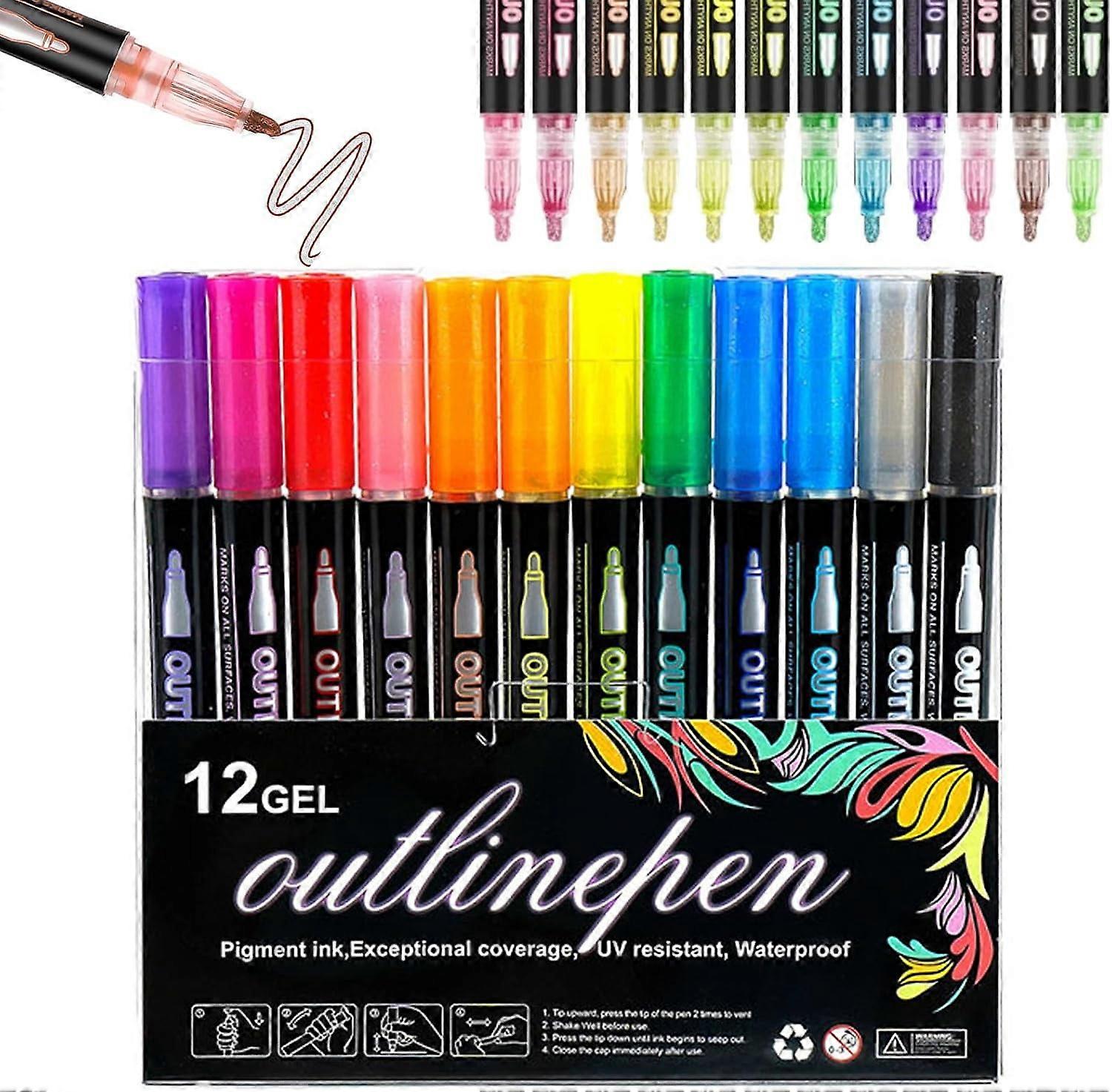 Coloring Lightstick Graffiti Highlighter Pens, Outline Markers Self-Outline Metallic Shimmer Markers Double Line for Drawing, Greeting Cards