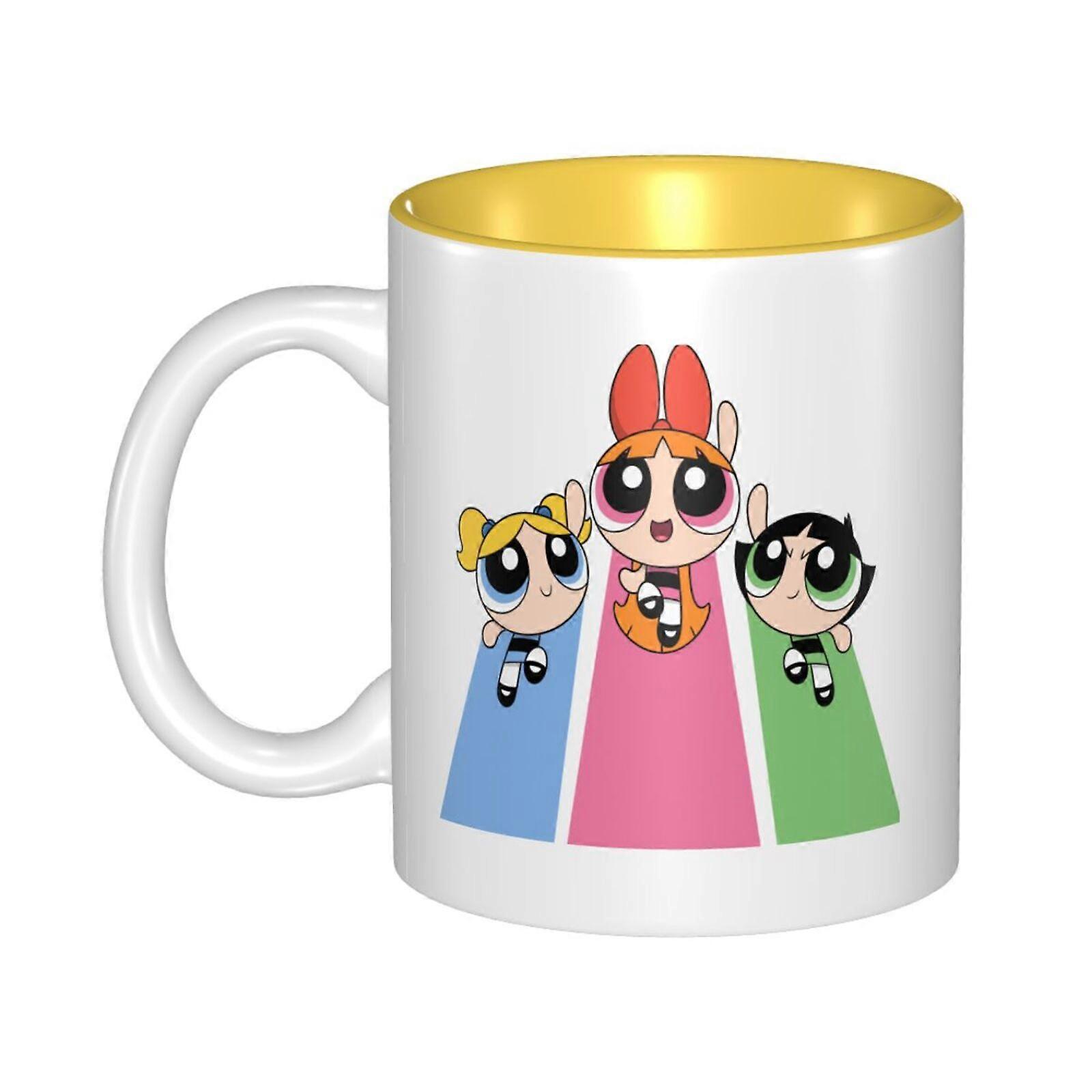 The Powerpuff Girls Ceramic Mug 11 Oz Yellow, Cute Coffee Cup Compatible with Christmas Holiday, Unique Design for Home Office, Men and Women