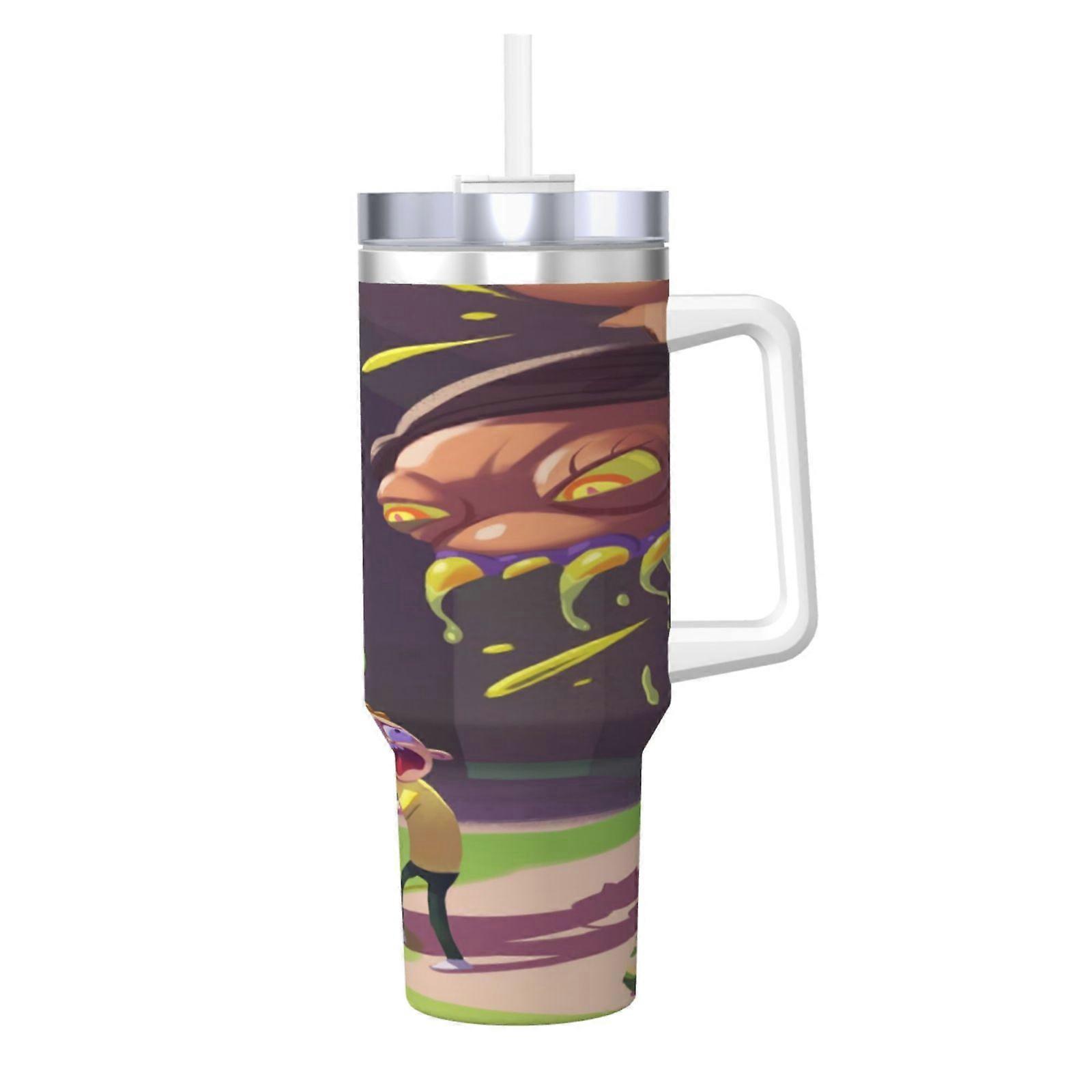 Rick And Morty Tumbler 40oz with Handle & Straw - Stainless Steel Travel Coffee Cup with Lid - Perfect Gift for Fans, compatible with all cup holders