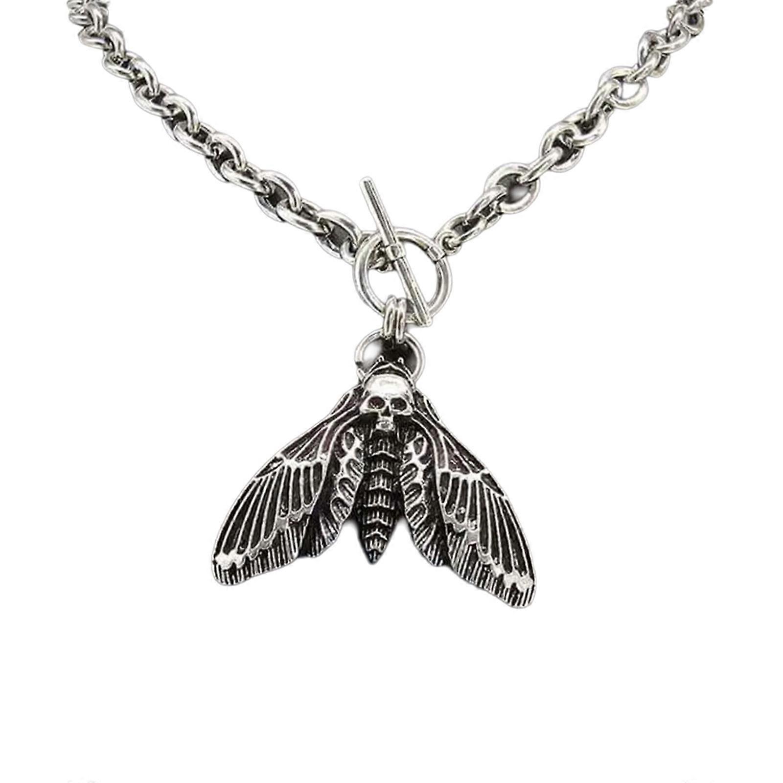 Gothic Inspired T Shape Moth Necklace Alloy Collarbone Chain Lightweight Jewelry Gift for Dramatic Fashion Looks Multicolor