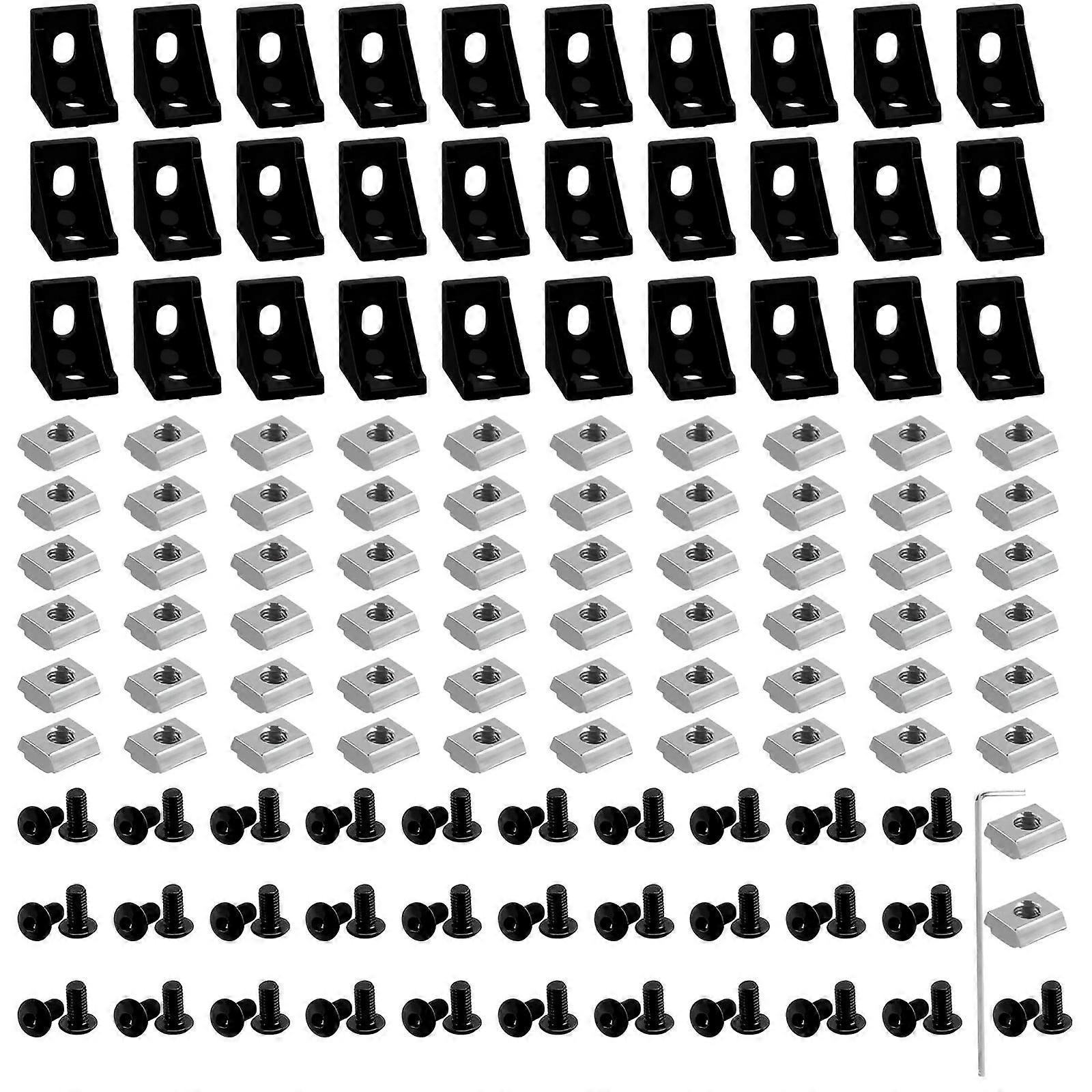 Grusce 2020 Series Aluminum Profile Connector Kit, Compatible with European Standard Corner Brackets, 30pcs Brackets, 62pcs Sliding Nuts, 62pcs