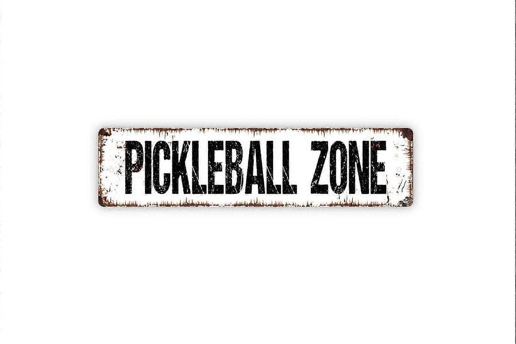 Pickleball Zone Sign Court Play Rustic Street Metal Sign or Door Name Plate Plaque Size: 4 x 16 Inch