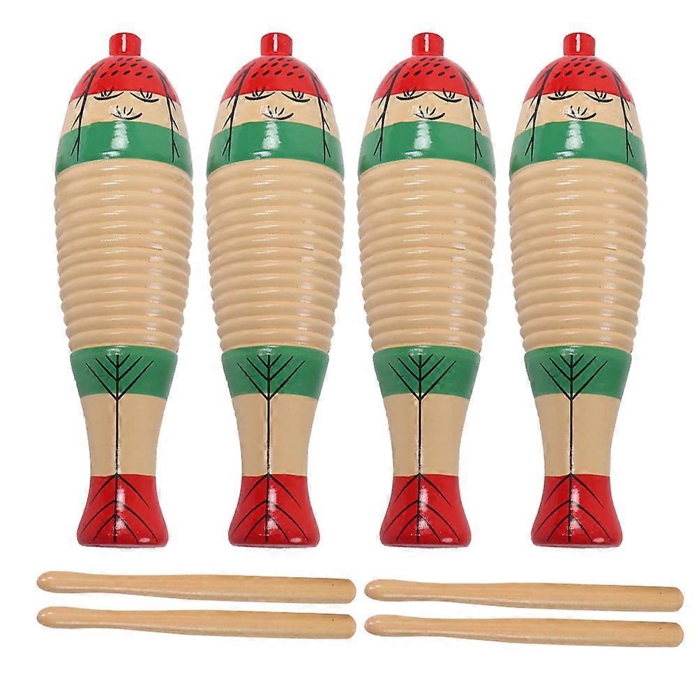 Wood Guiro Toy Percussion Instrument for Playing 4Sets Musical Set