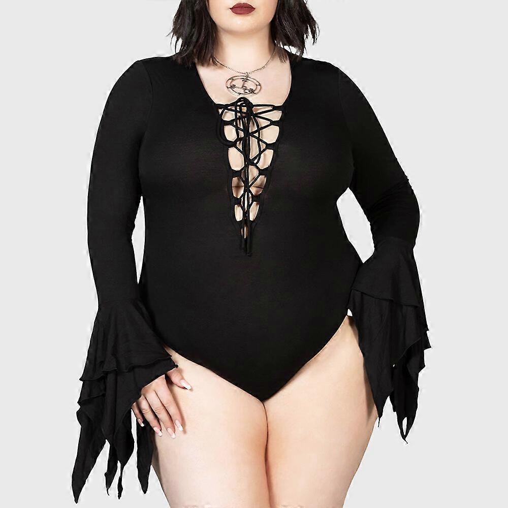 Women Halloween Gothic Romper Tops Ladies Flared Sleeve Punk Bodysuit T Shirt