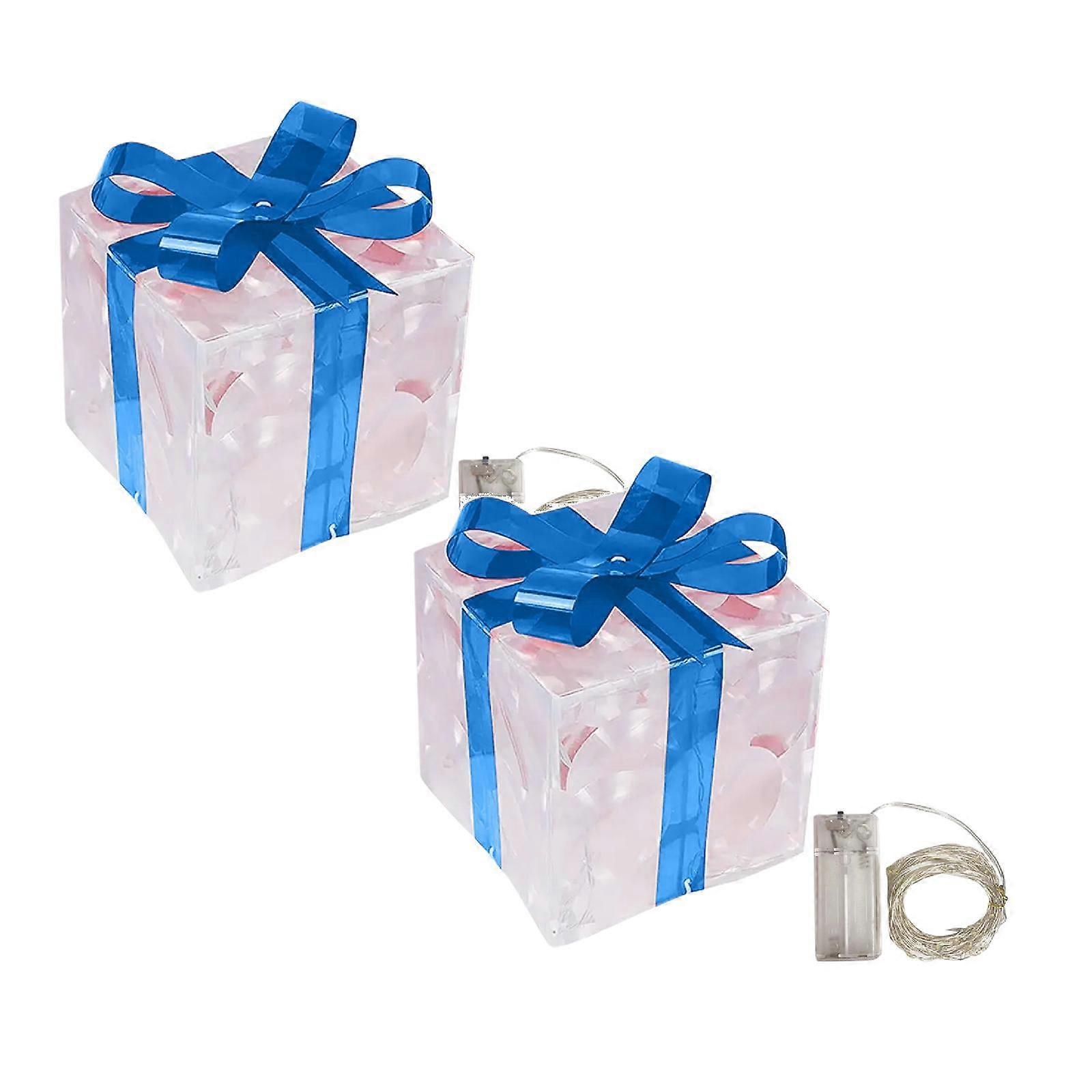 Xubond Christmas Glowing Gift Box Ornament with Bow, Lighting Outdoor & Indoor Decor, Backyard, Desk, Home, Compatible with LED Lights