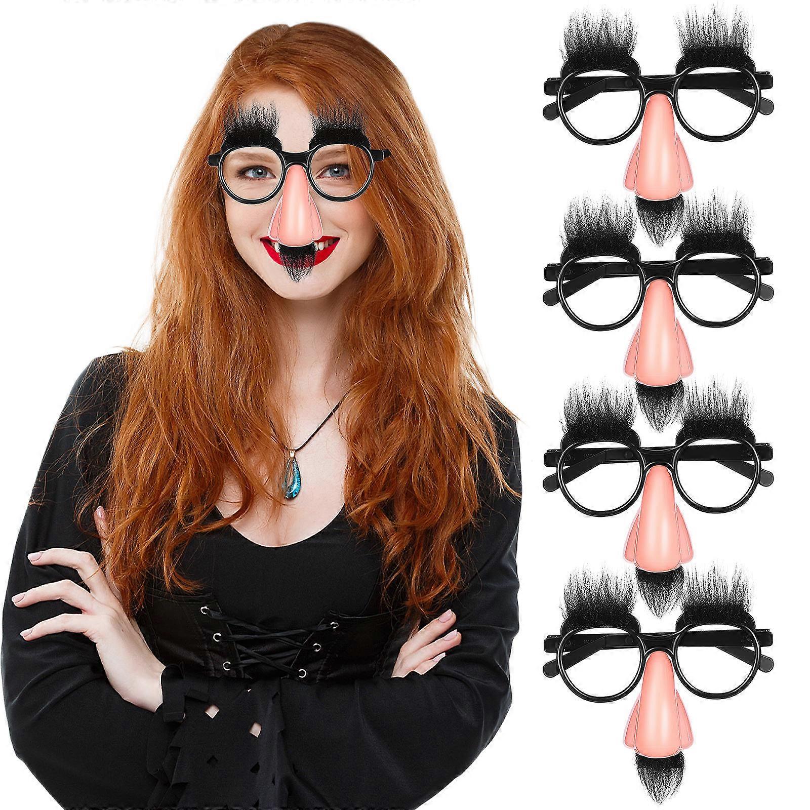 Funny Prop Eyeglasses with Nose for Adults Teens Using At Costume Parties in Black Plastic 5Pcs