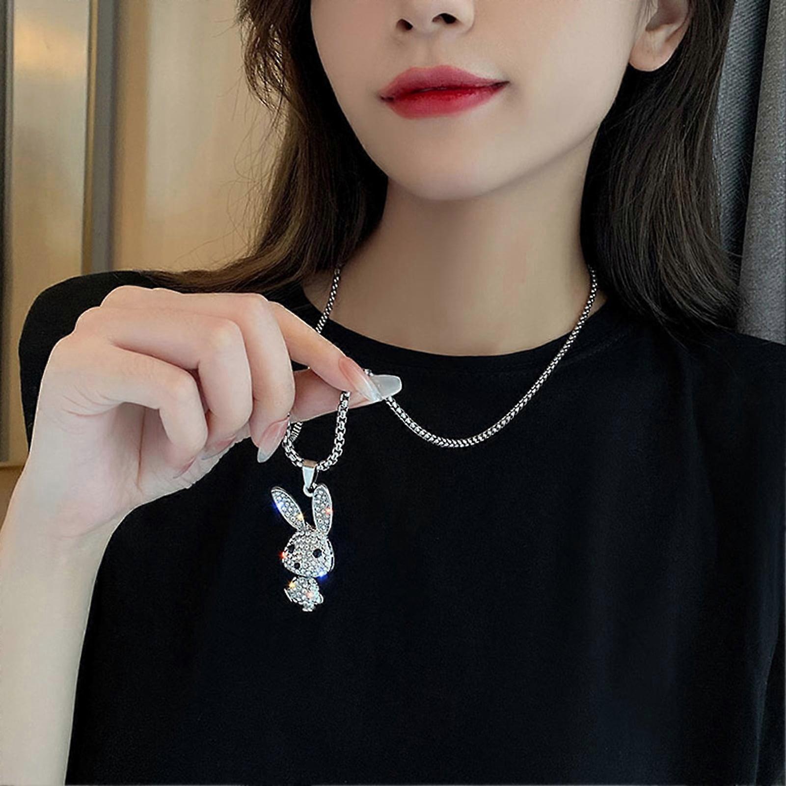 Pink Season Rabbit Pendant Necklace, Full Rhinestones Shiny Animal Charm, Fade-resistant Sparkling Neck Decoration, Compatible with Women's