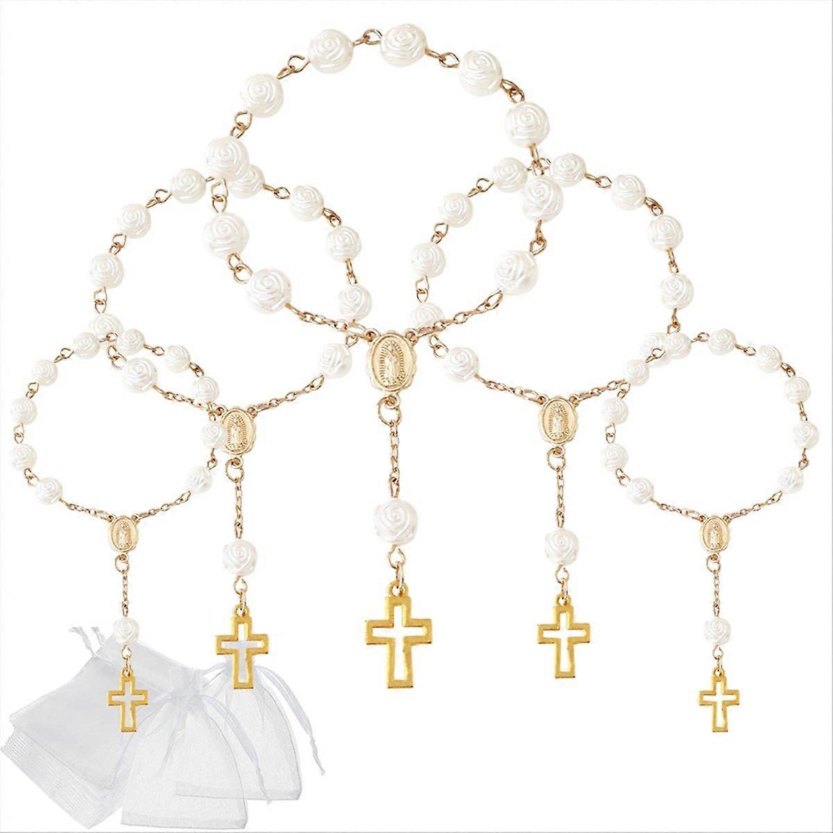 50 Pieces Mini Rosaries Acrylic Rosary Beads with Organza Bags for Weddings Party Favors