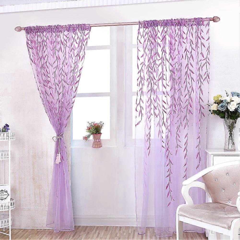 2 Pcs Leaf Voile Curtain Panels 100*200CM Purple, Sheer Green Leaf Tulle Drapes for Living Room, Bedroom, Balcony