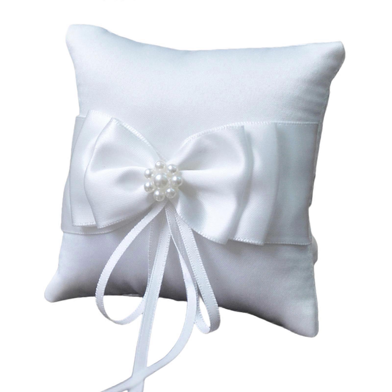 Unique Satined Wedding Rings Pillow Ribbon Bows Rings Bearer Elegant Rings Holder for Special Occasion Bride and Groom Use Multicolor