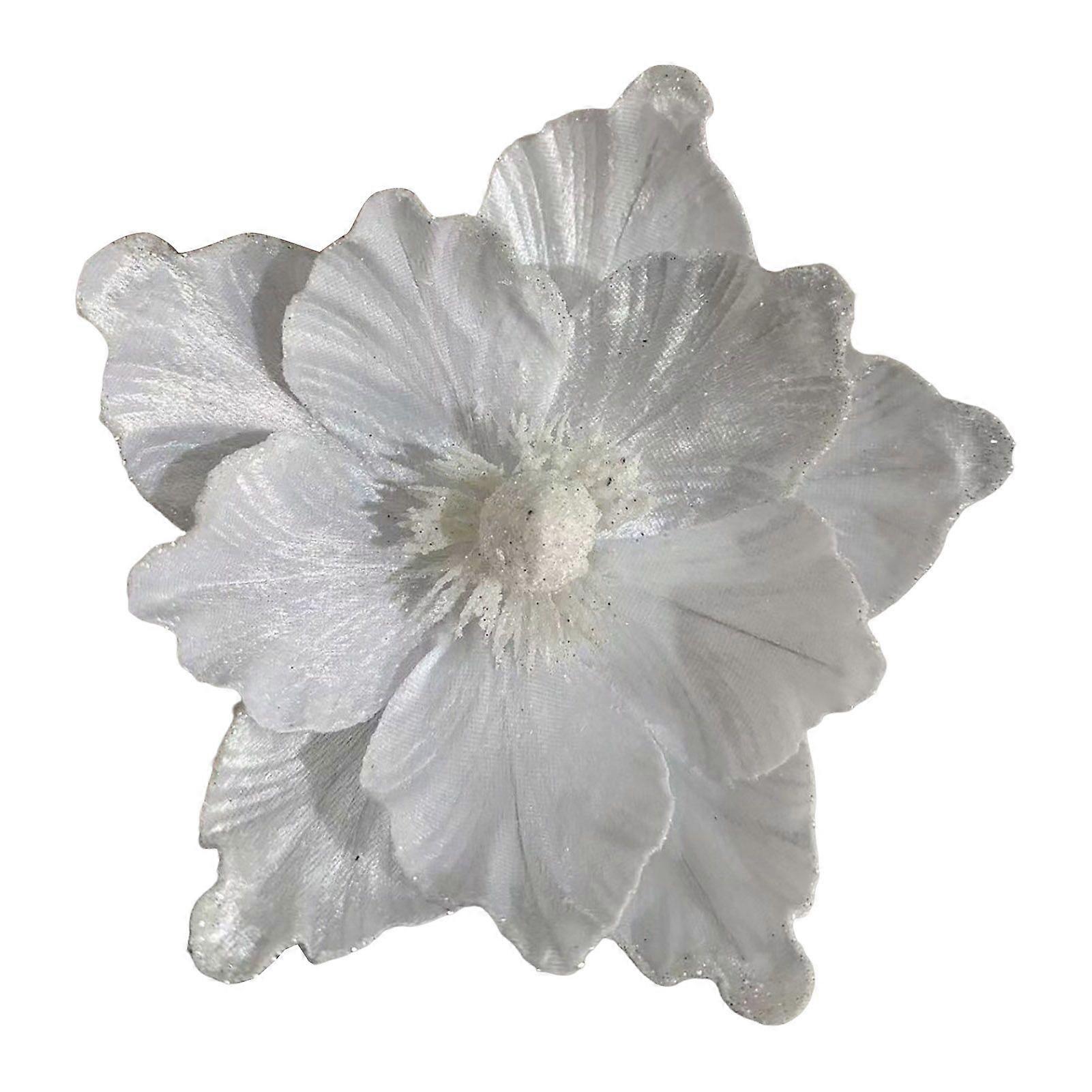 Artificial Christmas Flowers Large Glitter Magnolia Decoration Sparkling Xmas Tree Ornaments Wreath Garland Home Party Decor DIY Crafts