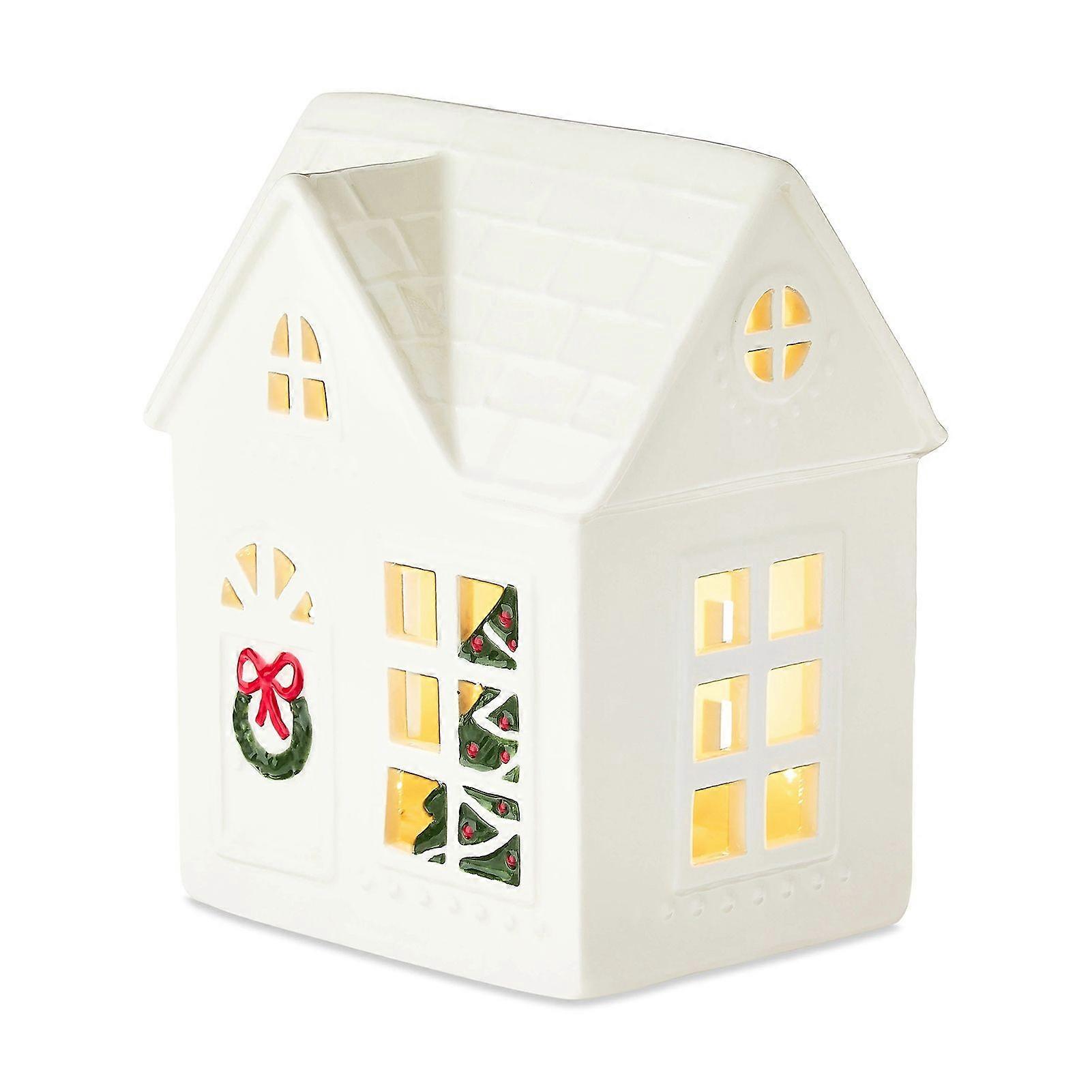 Christmas Village House Figurine LED Lighted White Small House Tabletop Decoration Winter Rustic Farmhouse Holiday Decor for Mantel Tabletop Room