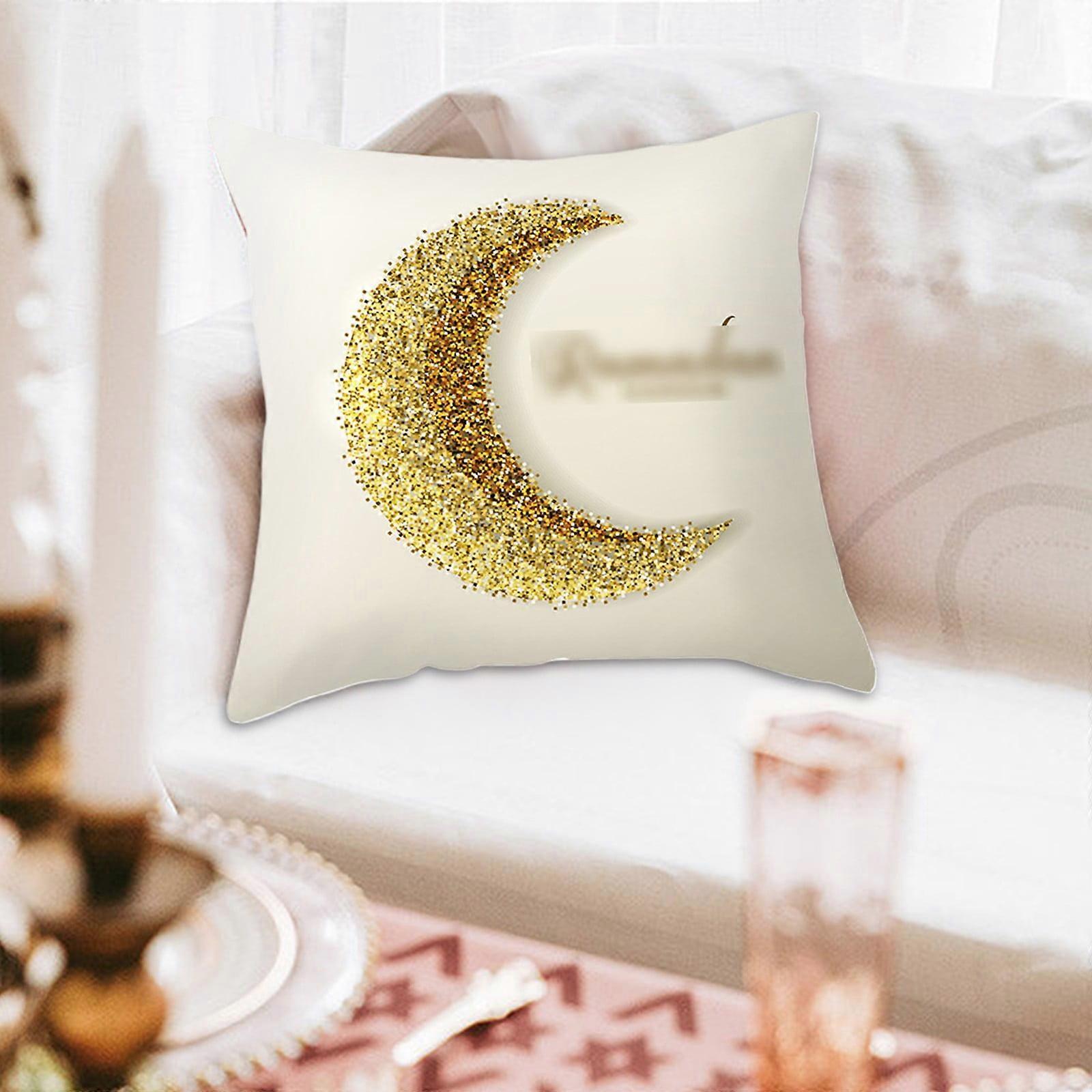 Miayilima Pillow Case Decorative Seat Cushion Cover 45x45 Cm Decorative Ramadan 2024 Double Moon Print Muslim Decorative Sofa