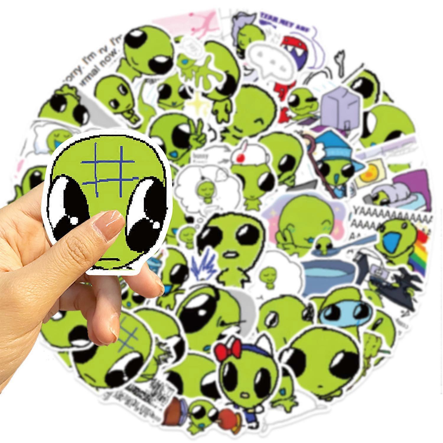 52 Cartoon Green Star Doodle Stickers to Decorate iPads, Suitcases, and Notebooks (DIY Waterproof)
