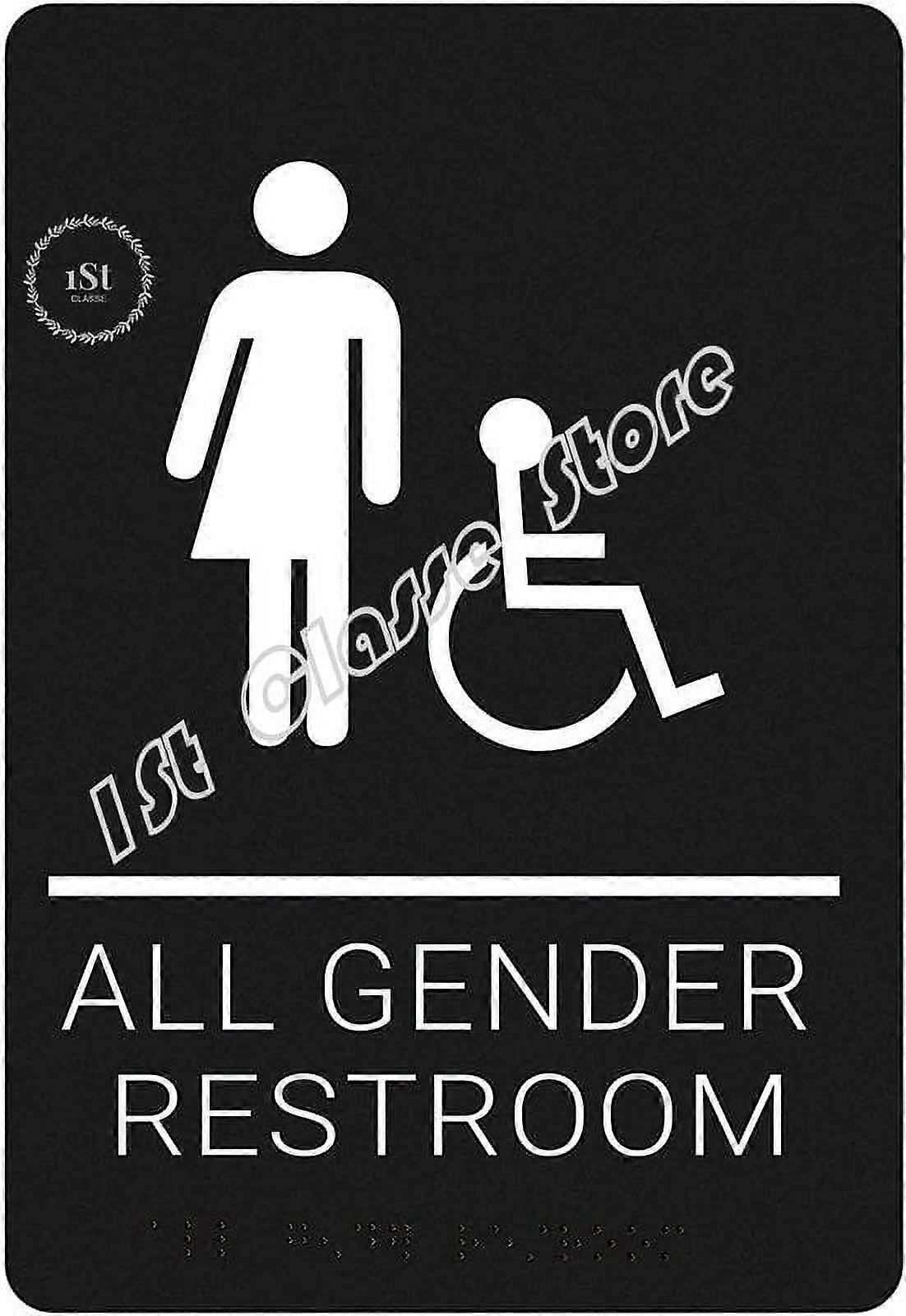 All Gender Restroom Sign - Black - ADA Approved Bathroom Sign with Double Sided 3M Tape metal wall sign decor Size: 8 x 12 Inches