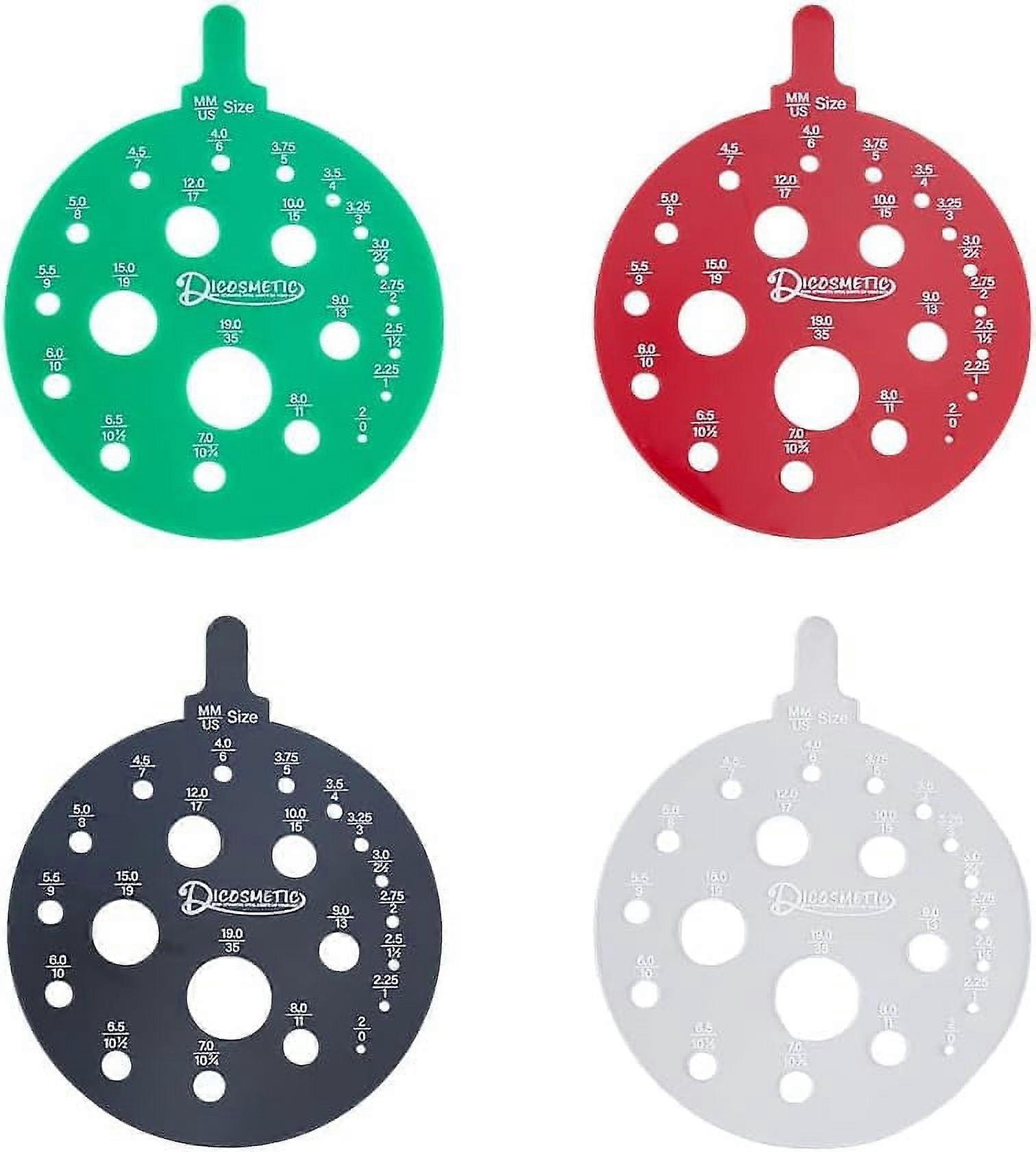 4Pcs Acrylic Knitting Needle Gauge, Round Sizer (Black, Translucent, Red, Green), US 0-35, 4.84x3.9x0.08 Inch