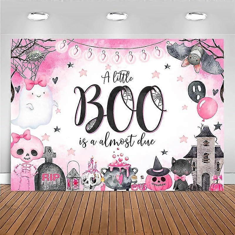 Halloween Baby Shower Backdrop for Girl, Cute Spooky Ghost Boo Pumpkin Background, "A Little Boo is Almost Due" Party Decor, Photo Booth Props (Pink,