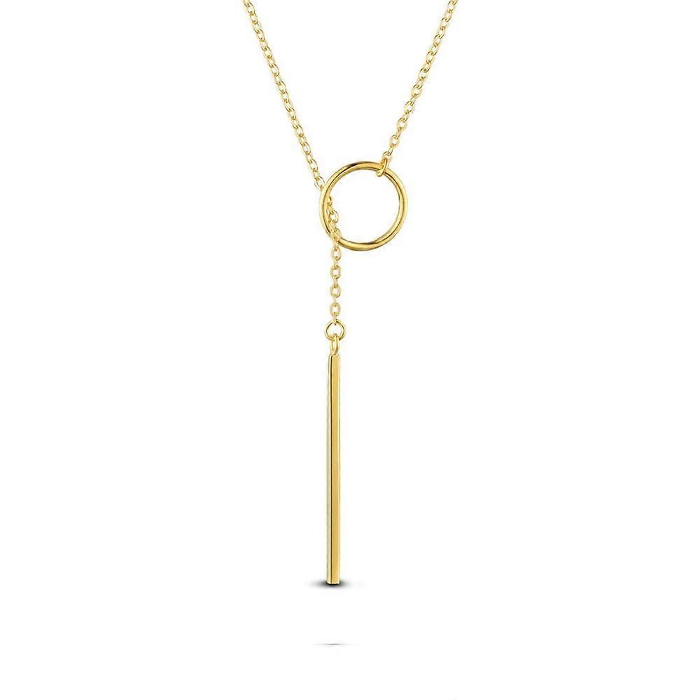 1pc 925 Sterling Silver Lariat Necklace with Ring and Bar Pendant Golden 27.55 inch(699.77mm).
