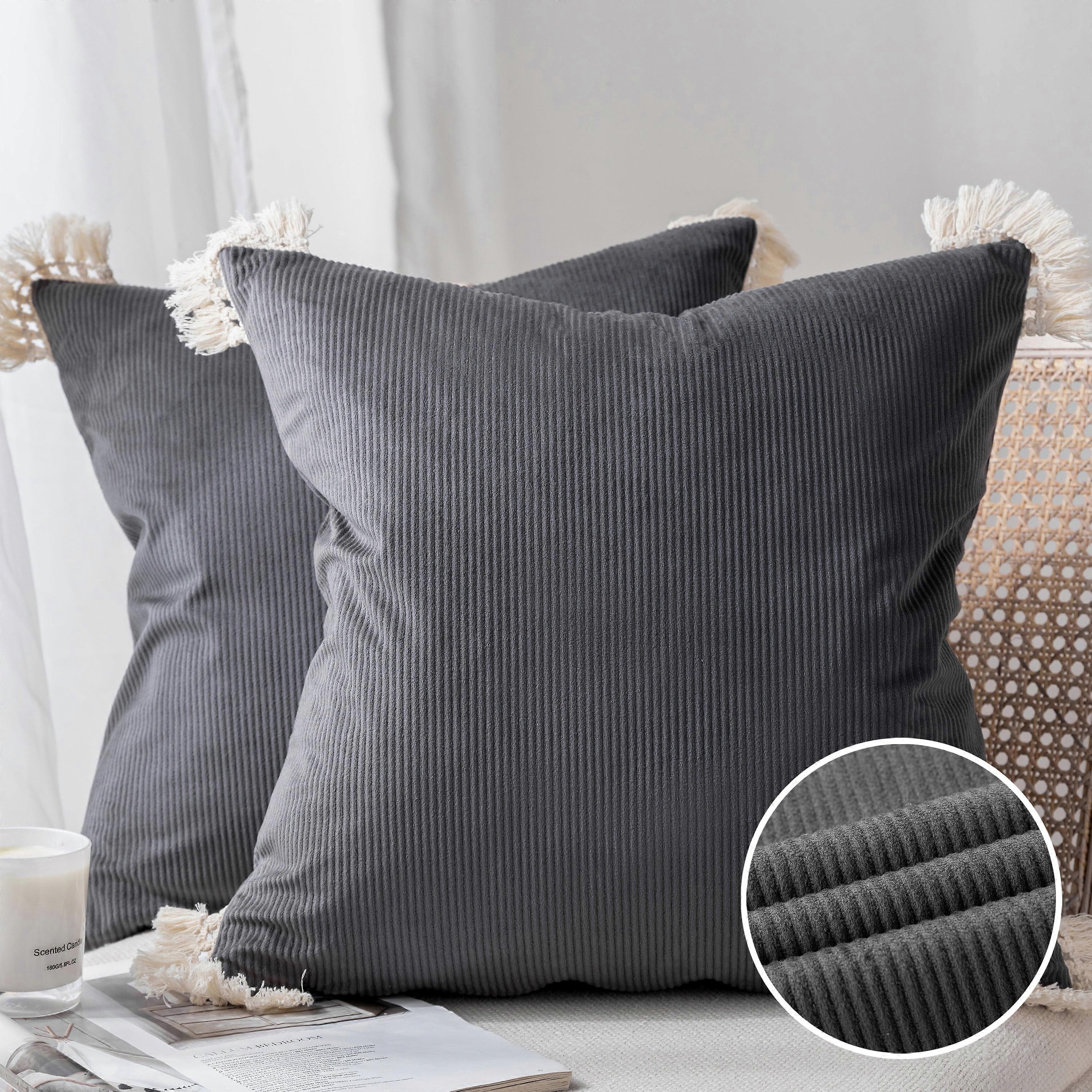 Phantoscope Soft Corduroy Velvet with Cotton Tassel Solid Square Throw Pillow Cusion Cover Accent Decorative for Couch, 18" x 18", Dark Gray, 2 Pack