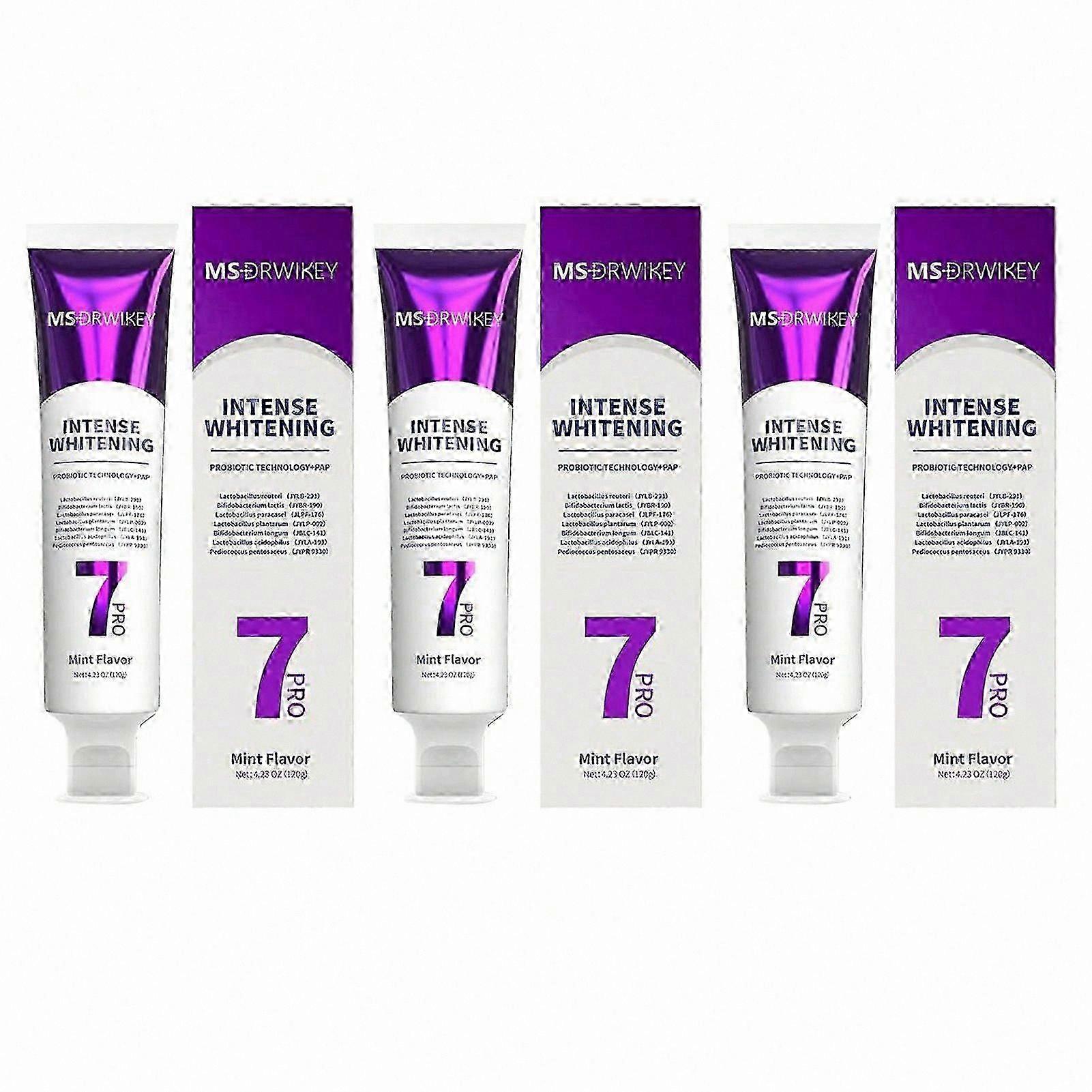 Features: Natural Ingredients: Contains natural ingredients to effectively and quickly remove years of stains caused by coffee, tea, and wine. Fresh Breath: Helps stop bad breath and freshens breath, making your smile whiter and more radiant. Gentle: Gentle enough for daily use, supports overall oral health with a natural taste that leaves your mouth feeling fresh. Easy to Use: Brush your teeth with this toothpaste for 3 minutes, twice a day, for best results. Notice: Actual color may be slightly different from the image due to different light effects. Please allow 1-3 cm deviation due to manual measurement. Net weight: 120g Package List: 1/2/3 pcs Pro Intense Whitening Toothpaste