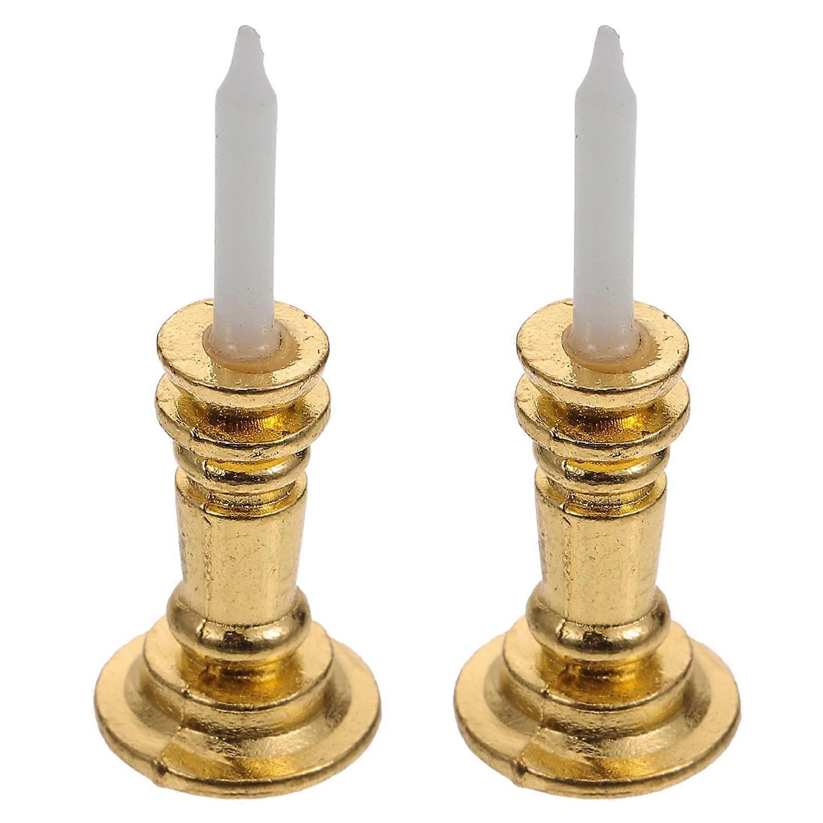 Simulated Candlestick Toy Dollhouse Miniature Candleholder 2 Pcs Accessories Decor Child