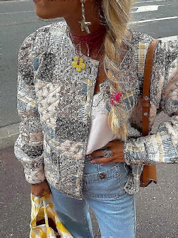 m Retro Print Colourful Cotton Jackets Women O-neck Long Sleeve Single Breasted Coat Autumn Winter Lady Casual Streetwear