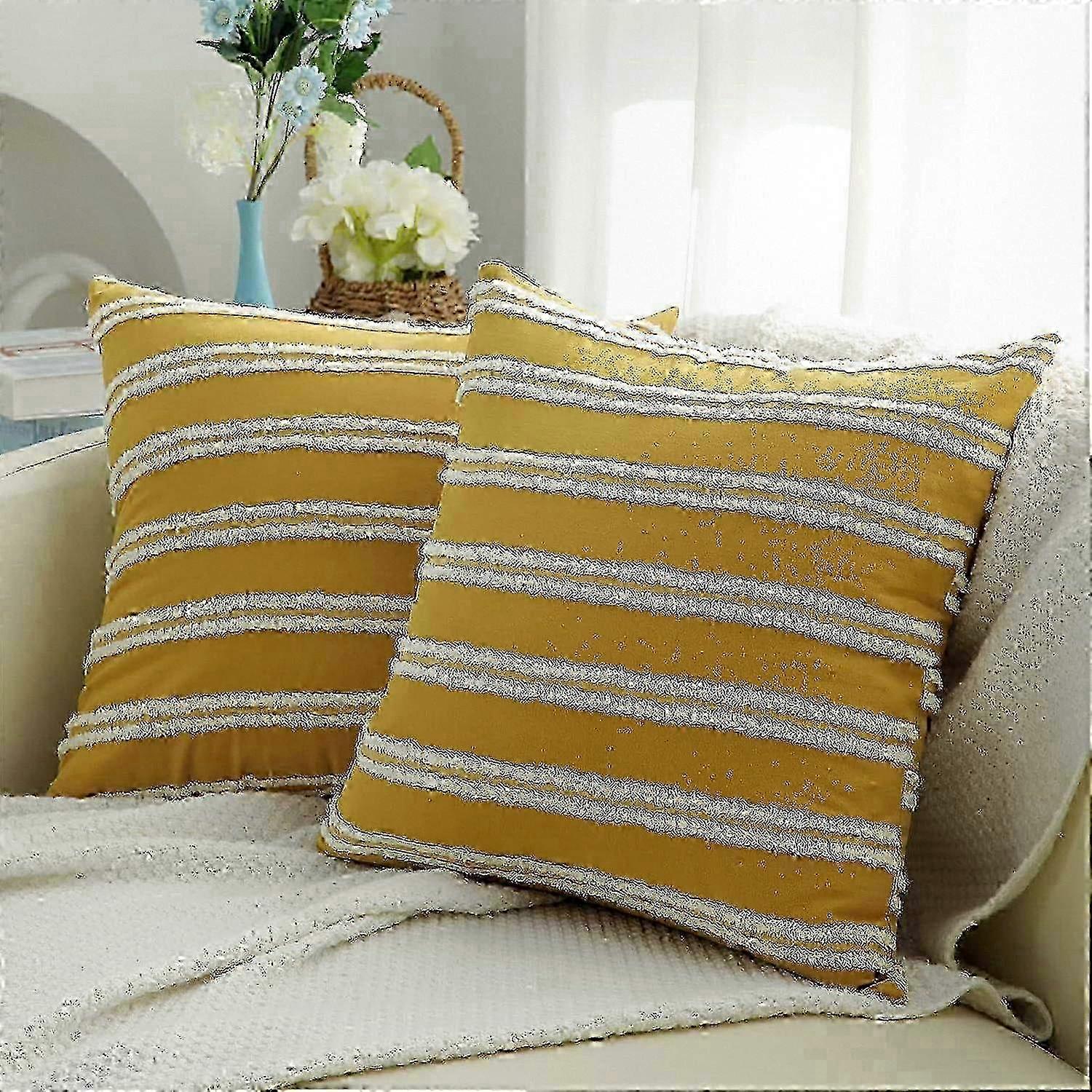 m Boho Decorative Throw Pillow Covers Set of 2, Neutral Striped 20X20 Pillow Covers, Mustard Yellow Cotton Linen Compatible with Various