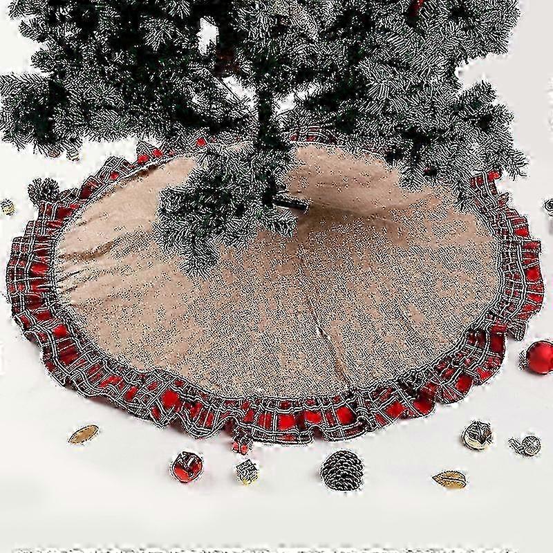 m Red plaid tree skirt 120cm linen mat for Christmas decoration