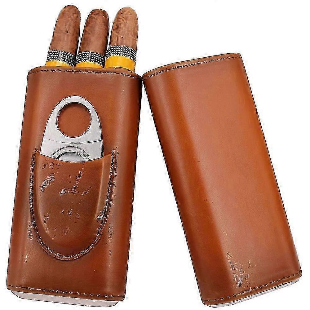 m TITOUMI Portable Leather Cigar Box, Humidor Leather Case for Aficionado, with Stainl Steel Cutter, Brown