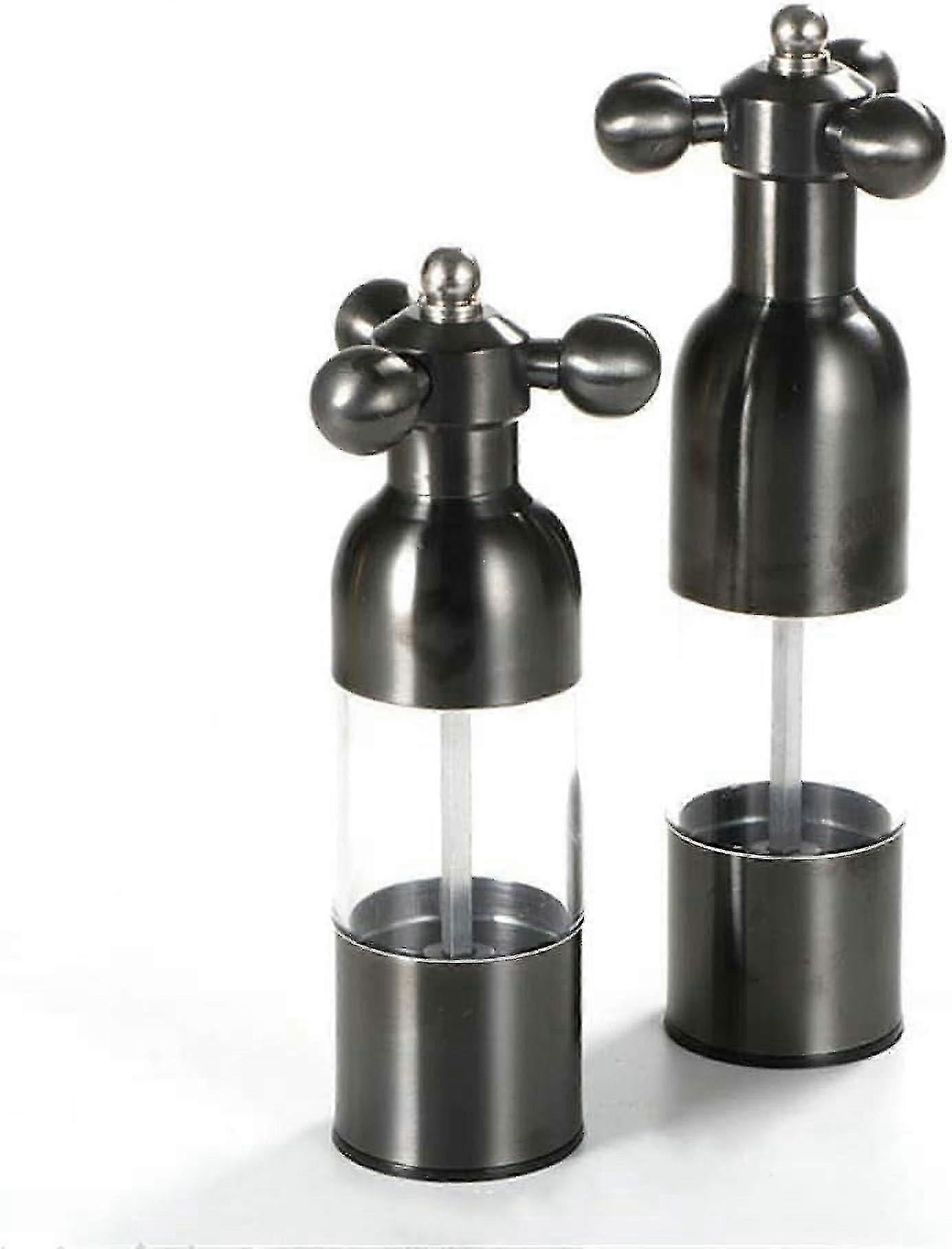 m Manual Stainless Steel Salt & Pepper Grinder with Handle, Adjustable Coarseness, Refillable, 2PC Black