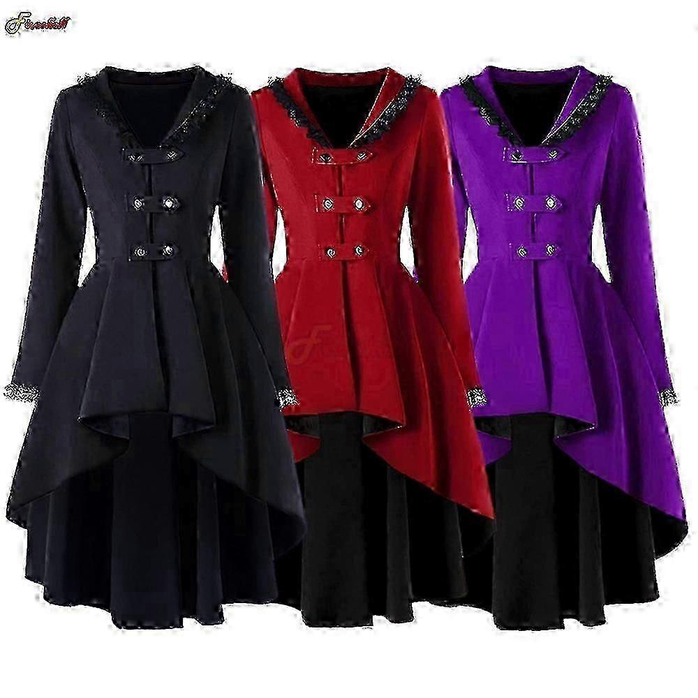 m Women ElegantFashion Steampunk Dress Victorian Medieval High Autumn Winter Dance Patry Robe Lace Pathcwork Tuxedo Costumes