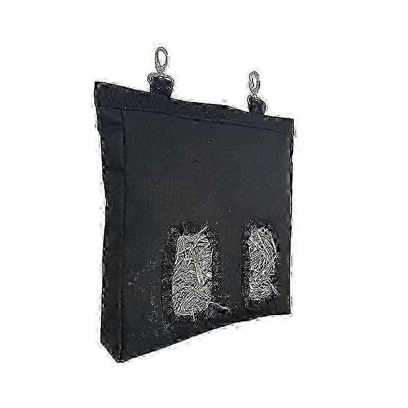 m 2 Ports Rabbit Hay Feeding Bag Small Animal Hanging Food Storage Bag (Black)