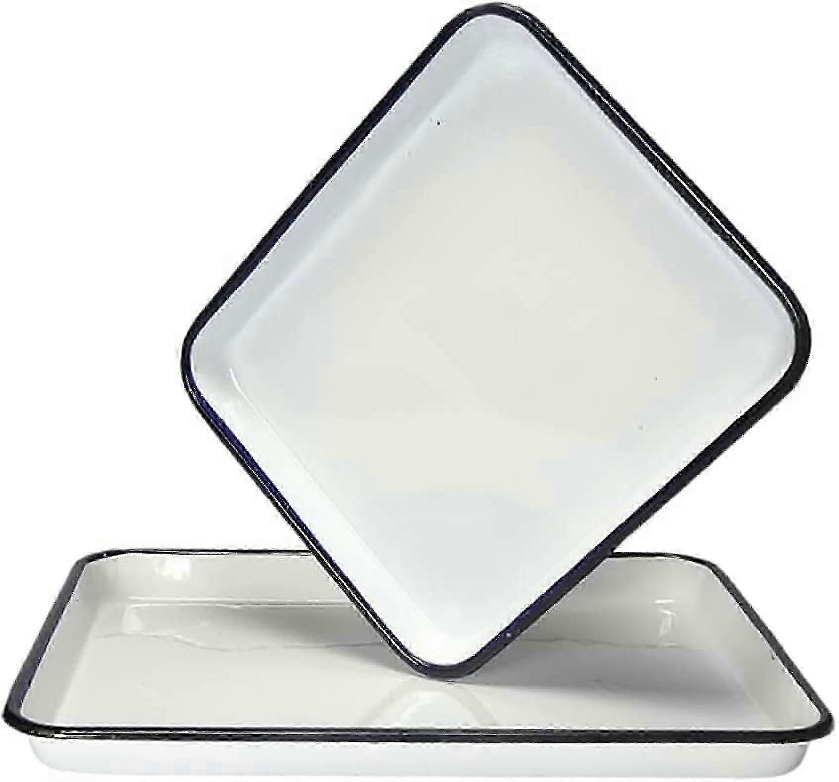 m 1PCS Handcrafted Vintage Tray White Enamel Home Cake Oven Baking Tray Square Retro Plates (16CMX22CMX3CM)