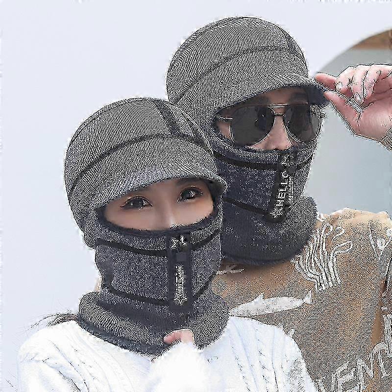 m Couple Fleece Knitted Hat Ski Hat Sets Windproof Winter Outdoor Knit Thick Siamese Scarf Collar Women Warm Keep Face Warmer Beanies Co