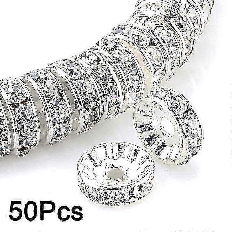 m 50Pcs/Lot Stainless Steel Crystal Spacer Beads Jewelry Making Necklace Accessories With Rhinestone